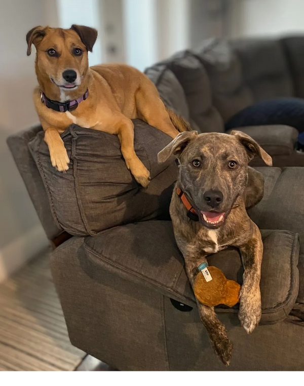 Eevee born in 2021 and Ringo born in 2023 are the youngest but the biggest of the pack. Both are rescues.